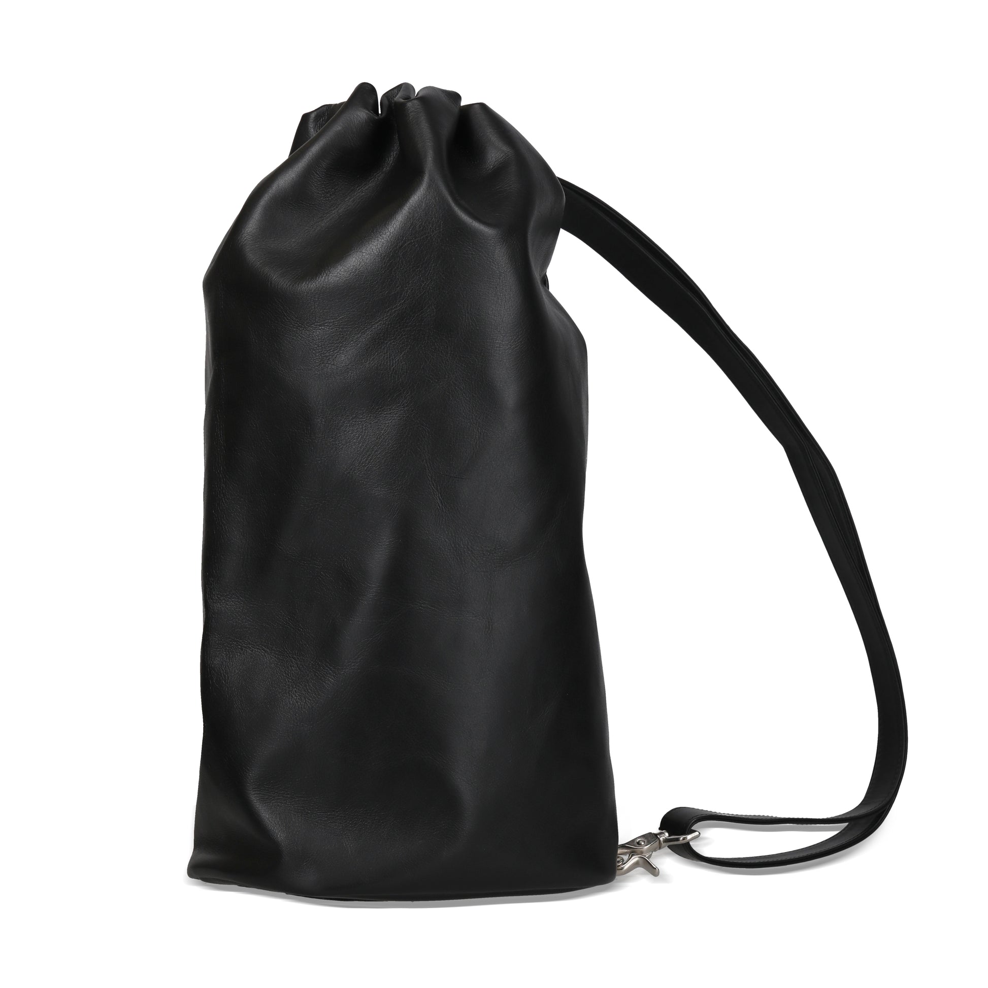 ポニーライクカウハイドレザーを使用した巾着型のショルダーバッグ